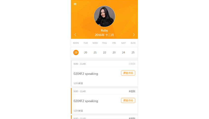 - 個人首頁: 按周查看個人課程信息及簽到記錄、課堂點(diǎn)名(僅老師端)