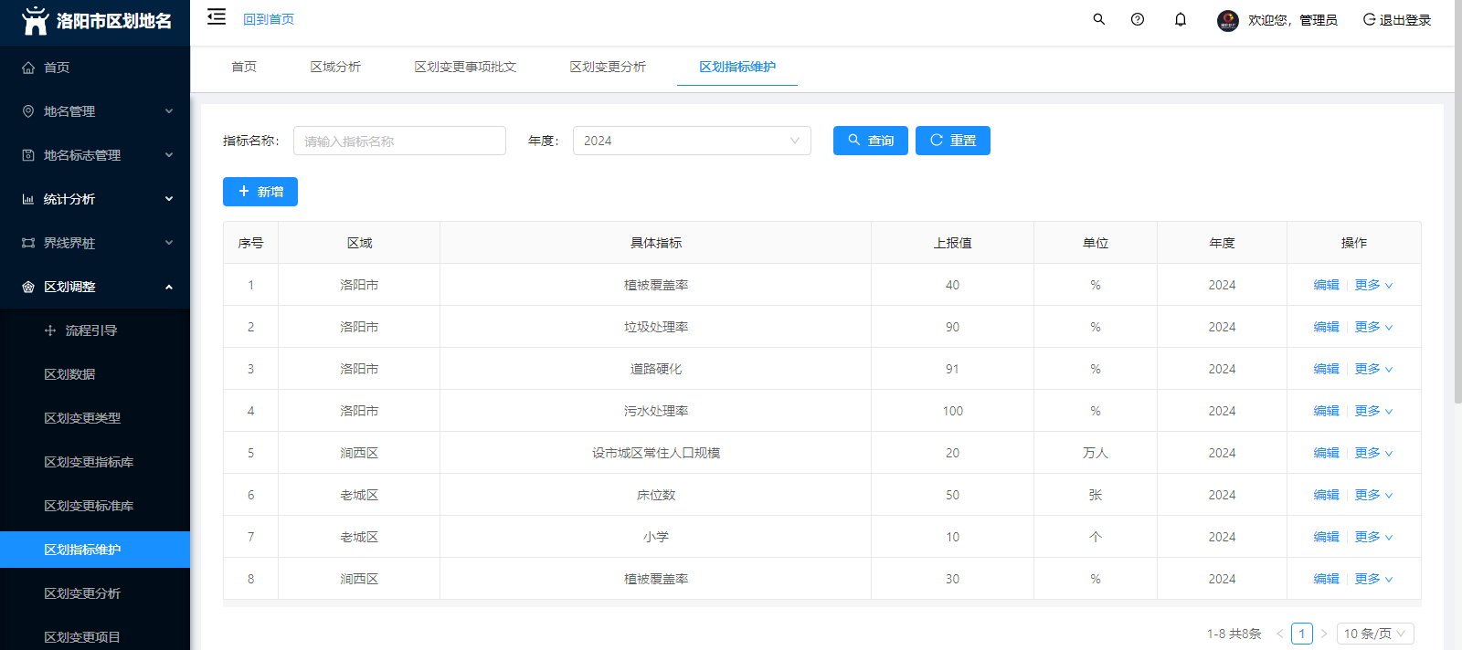 區(qū)劃調(diào)整:區(qū)劃數(shù)據(jù)、區(qū)劃變更類別、區(qū)劃變更指標(biāo)庫(kù)、區(qū)劃指標(biāo)維護(hù)、區(qū)劃變更分析、年度區(qū)劃變更表、區(qū)劃變更事項(xiàng)批復(fù)文件、歷史文件上傳